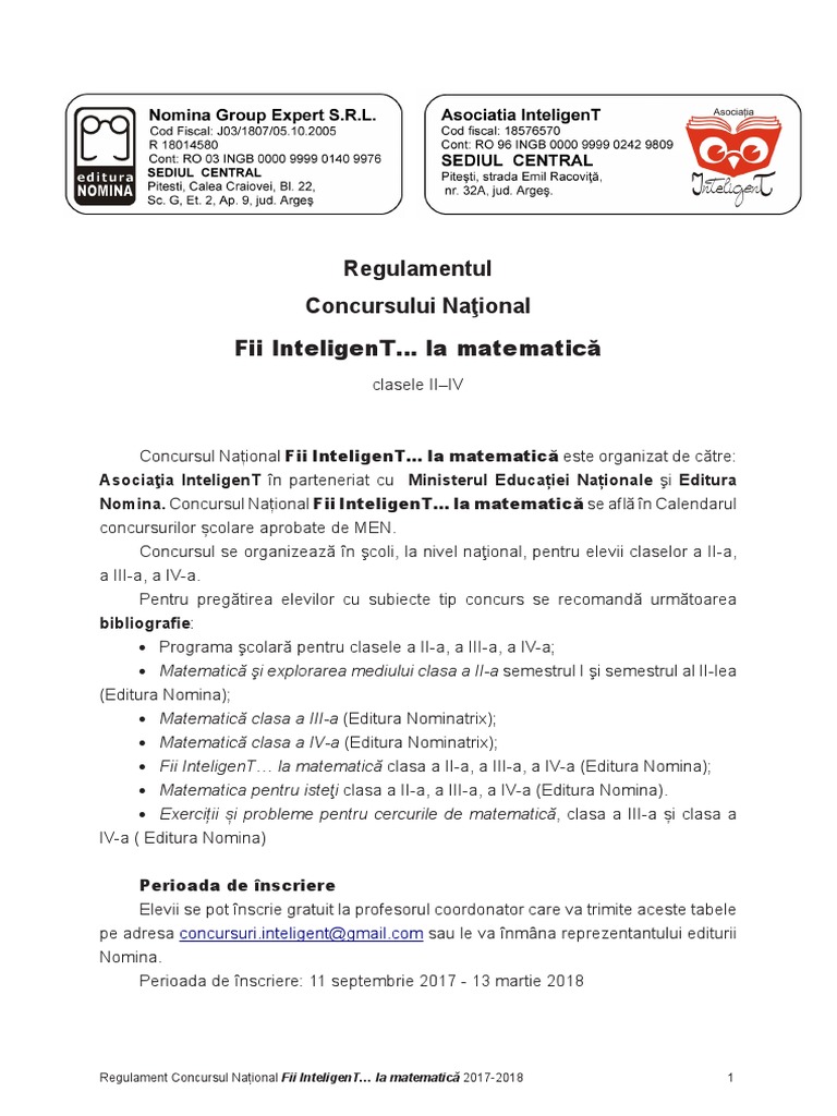 untuk "Concurs Fii Inteligent La Matematica 2019"